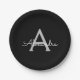 Black Silver Modern Script Girly Monogram Name Paper Plate