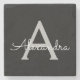 Black Silver Modern Script Girly Monogram Name Stone Coaster