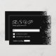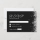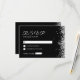 Modern Black Silver Wedding RSVP Card - features glittering drops on the black background with white text .
