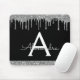Chic Modern Black and Silver Modern Sparkle and Dripping Glitter Girly Monogram Name Monogram Mousepad. This Chic Elegant Mousepad can be customized to include your first name and initial.