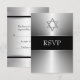 Black and silver chrome metallic look Star of David Bar Mitzvah invitation RSVP.
