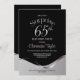 This modern black and silver surprise 65th birthday party invitation features a black and silver colour scheme, separated by a fluid wave and a stylish pink ribbon that flows from one side to the other. The customizable text area allows you to effortlessly include all the necessary details for your special birthday celebration, including the date, time, venue, and RSVP information. Whether you're planning a cozy gathering or a grand affair for your guest of honour, this contemporary invitation is sure to impress your guests.