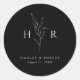 Black Simple Minimal Monogram Botanical Wedding Classic Round Sticker
