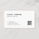 A minimalist business card featuring sans serif typography, QR code and pinstripes pattern. Personalize by adding your name, business and details. This black and white minimalist business card is perfect for various businesses.