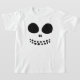 A awesome shirt for a boy featuring a cute black skull face on a white background. This would make a great Halloween costume or just a cute shirt for a boy who likes skulls.