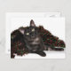 Black smoke cat Christmas Holiday Postcard