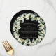 A black, three course wedding menu, featuring a wreath of hand painted snowberries and eucalyptus. Works on square or round card stock. All text is fully editable, and the scattered dots on the front and back can be deleted before ordering if you would prefer. Please view this Collection in my store for menu’s of different sizes/colours/shapes and for coordinating items.