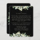 A black flat wedding enclosure card for wedding travel information or for directions if your reception is at a different venue. Featuring an edging of hand painted snowberries and eucalyptus on the front and a wreath on the back of the card. All text is fully editable and the scattered dots on the front and back can be deleted before ordering if you would prefer. This card is available with alternative botanical designs, in a landscape format, and in different colours. Please view the Collection in my store to see all options and coordinating items.