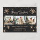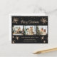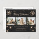 Black photo Merry Christmas and Happy New Year postcard featuring a photo collage with stars, snowflakes and a beautiful hand-lettered holiday greeting in a festive script font. Easily personalize this black holiday postcard with your photos, family name and text. The background can be customized to any colour.
