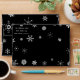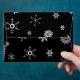 These festive envelopes feature falling snowflakes on a black background. The inside of the envelope features a red and black plaid Tartan pattern. Personalize your return address or remove it completely.