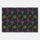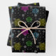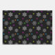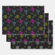A traditional theme with a modern twist. This black wrapping paper with a pop of color will stand out.