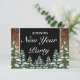 Black Snowy Wood & Forest Pine New Year Party RSVP Card