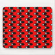 This mouse pad has a mid-century modern design of black ovals with white circles connected by white lines on a field of red. Want different colours? Message me.