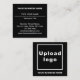 Black square business card for your customers or clients to easily find your business address and contact information. The front side contains plain text information and the back side contains your business name and logo. Customize it by typing your business name, your name, your title, address, phone number, e-mail, website or social media page and uploading your business logo. Square business card that you can also use to build brand name awareness. Please check the appearance of the front and back sides after typing texts and uploading logo. If the appearance is pleasing to you, you can place your order now. If you need to resize or reposition the texts and logo, please adjust in the design tool. You can also change the background colour, font colour and font style in the design tool.
