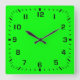 Clock with a black square clock face on a lime green background. Customizable. Modern and trendy, yet classic, this clock is perfect for any decor.