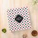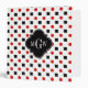 A stylish, modern, chic mixed pattern with red polka dots and black squares on a white background. Customize the black quatrefoil label with your 3 initial monogram, name or other text. You can also change the font, adjust font sizes and font colours, etc.