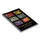 This rainbow coloured stained-glass look design shows a black frame with 6 panels. Each window is made of a single colour collage of various flower photos I've taken. The result is a red, orange, yellow, white, blue, and purple combination of beautiful flowers arranged in a frame, some with text "The earth laughs in flowers" by Ralph Waldo Emerson.