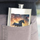 The product is a good size and came exactly as it was pictured. The lid is not attached to the flask, which could be dangerous on drunken nights... The print came out surprisingly well and looks very sharp. Would definitely recommend.