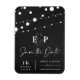 Black White String Lights Monogram Wedding Save The Date Magnetic Invitation . Send out these elegant Chalkboard String Lights Wedding Save The Date magnetic Invitation to family and friends. A perfect way to announce the wedding. Can be fully customized by changing the monogram initials , names of the Bride and Groom , wedding Date . The design has a faux chalkboard background with string lights . For any further customization, feel free to contact me at mypaperlove2021@gmail.com