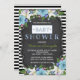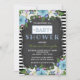 Pretty blue floral black stripe chalk baby shower invitation. You can easily customize this cute blue and black stripe chalkboard baby shower invitation by adding your event details in the font style and colour, wording, layout, etc., of your choice.