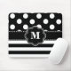 Black Stripe Dots Monogram Mouse Pad. Pad