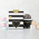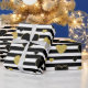 Bold black and white stripe pattern wrapping paper accented with luxe gold-style hearts for a chic, romantic look. A high-contrast design with a modern glam mood.