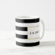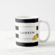 This mug features bold black and white stripes with a gleaming peony flower in faux gold effect. Coordinates with our Black Stripe & Gold Peony office accessories, paper products, and accessories. Customize with a monogram, name or text of your choice!