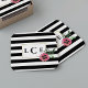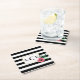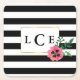 Modern floral paper coasters feature chic black and white stripes with a pretty watercolor pansy flower and faux gold accents. Customize with a monogram, name or text of your choice!