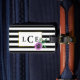 Black Stripe & Purple Pansy Monogram Luggage Tag