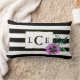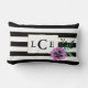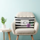 Black Stripe & Purple Pansy Monogram Throw Pillow