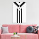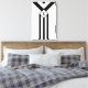 Three alternating black and white chevrons descend from the top of the geometric pattern and end at a diamond. It looks like a stylized medal hanging from a ribbon. The diamond contains a customizable monogram. Three black stripes extend from the bottom of the diamond to the base of the vertical design.