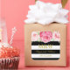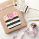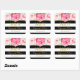 Wedding monogram favour tag stickers in black and white stripes pattern with pink watercolor flowers and gold colour text. A great way to decorate wedding favours.