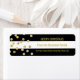 Christmas address labels with black and white stripes pattern and festive gold confetti.