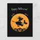 Black Stylish Halloween Witch & Pumpkin Print Postcard
