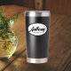 Gift your wedding groomsman this trendy and personalized, stainless steel, thermal tumbler, personalized with his own name in black, stylized script inside a white, oval design on a black background. Personalize your tumbler by editing and replacing name with your groomsman's name. Select your tumbler colour style.