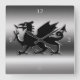 Black stylized Welsh Dragon on metallic-look Square Wall Clock