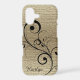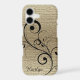 Here is a pretty phone case for her! It features an elegant black swirl design with her name in black script at the bottom. The image and text are placed on an exquisite gold textured look background. Classy!