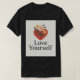 Express your confidence and positivity with this stylish black t-shirt with a floral red heart pattern and the inspiring inscription "Love Yourself". Ideal for displaying a message of self-esteem and well-being, whether it be to go out, offer or be happy.
