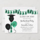 Black and Teal Balloons With Graduation Hat and Tassel Garland Graduation Party Invitations.