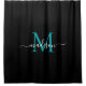 Elegant Modern Black Teal Green Monogram Feminine Girly Script Name Shower Curtain