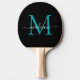 Modern Black Teal Green Monogram Stylish Script Name Ping Pong Paddle