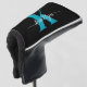 These simple, modern golf club covers with your first name in a trendy script font in white and your first initial in a modern cap font in teal on black are perfect for you. They're stylish and trendy and yet very classic. They're unique - like you! Get them for all your clubs.