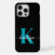 This simple, elegant black iPhone 15 Pro Max Case with your first name in a trendy script font in white and your first initial in a modern cap font in teal would look fabulous on your cell phone and will keep it protected from breakage. It's stylish and trendy and yet very classic.