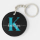 This modern black keychain with your first name in a trendy script font in white and your first initial in a modern cap font in teal is perfect for your keys. It's stylish and trendy and yet very classic.