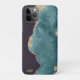 iPHone 11 PRO case Lapidary Geologist Stone Lover dramatic TEAL BLUE MOSS GREEN Agate slab slice on crisp BLACK Background. Personalize with GOLD Monogram or Initials.
