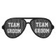 Black team groom bachelor party shades. Also customizable / available for team bride. Funny props for soon to be married men. Fun wedding / marriage accessory for groom to be and best man, groomsmen. Boys night out / Stag night gathering. Cool aviator sunglasses with custom personalized text. Customizable frame colour and background colour. Gag party props.