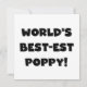 Black text World's Best-est Poppy T-shirts, mugs, hoodies, cards, tote bags, magnets, keepsakes, and other world's best poppy gear.