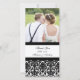 Wedding thank you photo cards in elegant and modern and chic black and white with delicate floral damask pattern. A perfect way to thank friends and family for wedding gifts and to share your wedding photos. Available in matching postage, and many other products for your wedding.