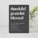 The powerful words thankful, grateful, blessed embody the true meaning of the season, while the clean black-and-white contrast adds a sophisticated edge. Fully customizable with your event details, this invitation sets the perfect tone for a meaningful holiday meal.