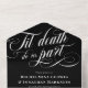 Elegant goth all in one wedding invitation in black and white with swirly calligraphy,. An elegant wedding invitation for a Halloween wedding, goth wedding, or similar.